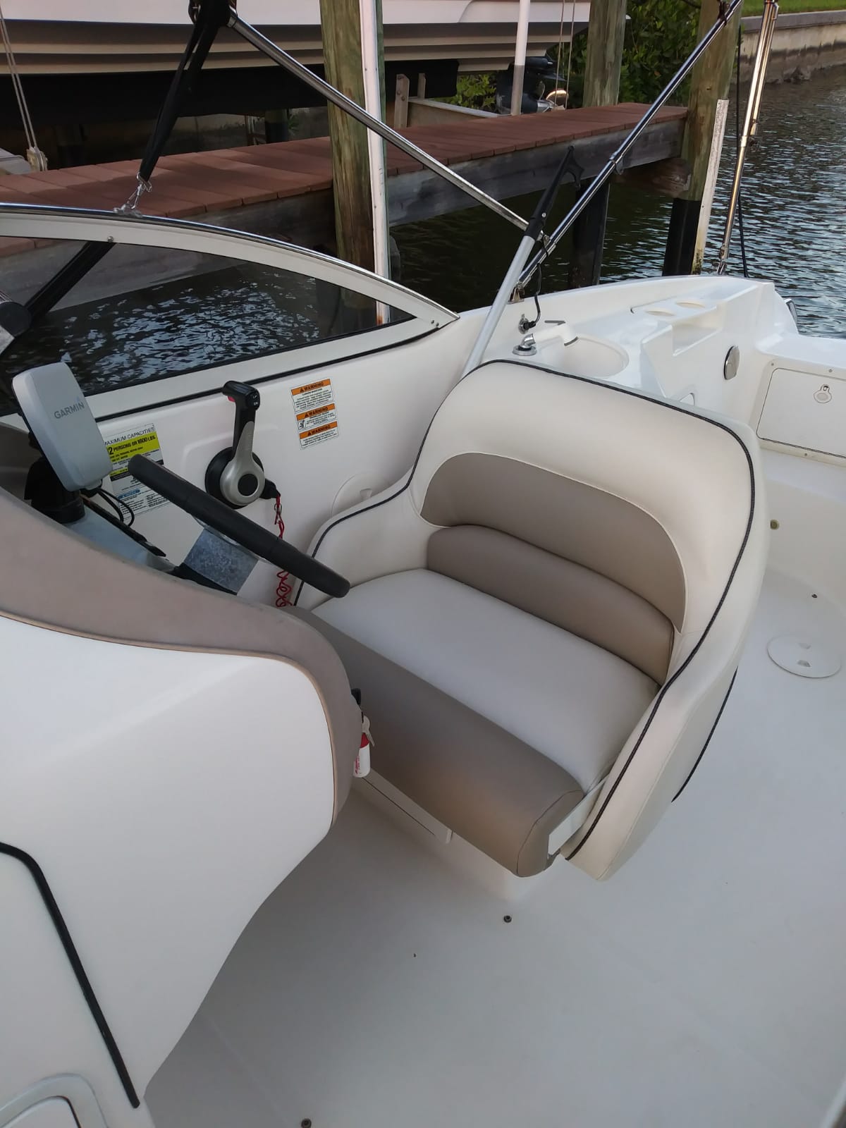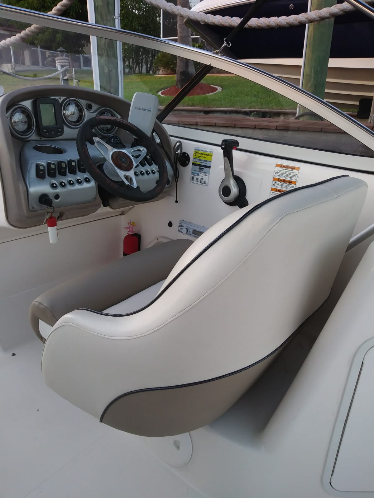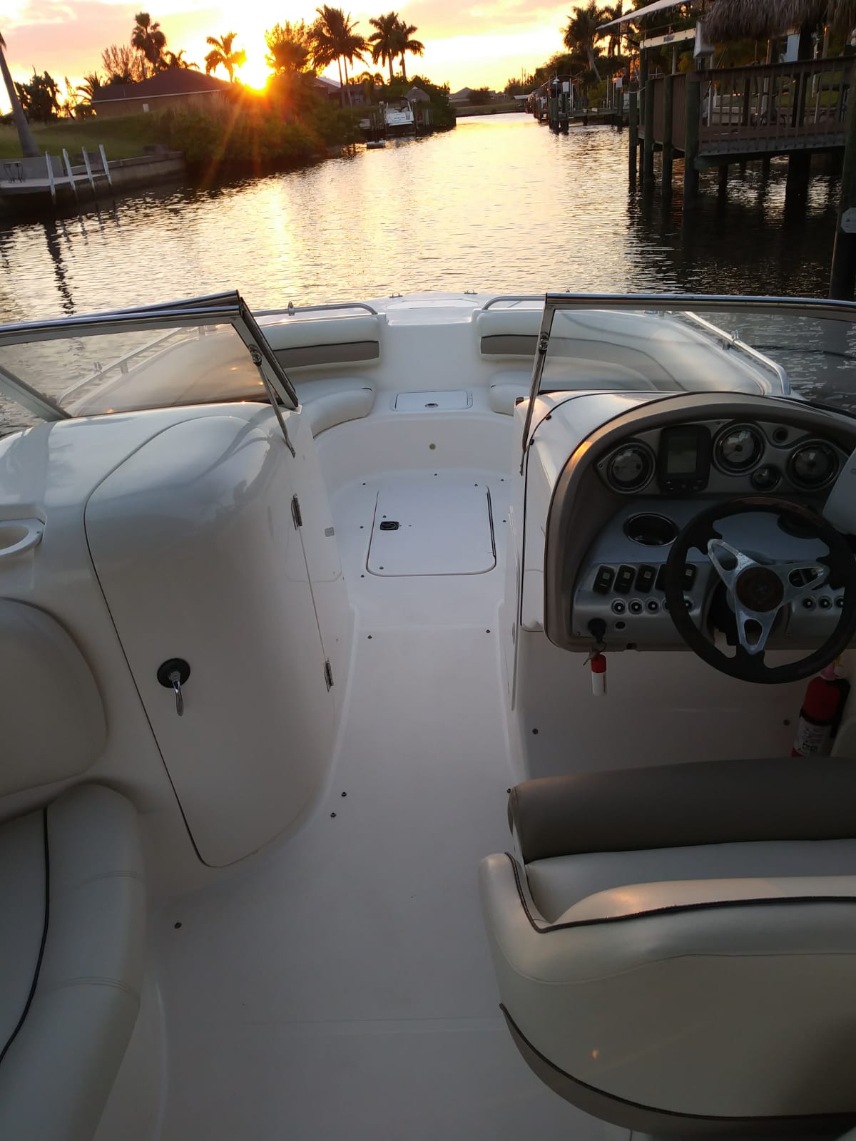 Die 24' HURRICANE 237 Sundeck Bowrider wurde 2018 neu aufbereitet – das wohl populärste Ausflugs- und Familienboot in der Region: Im vorderen und hinteren Bereich befinden sich komfortable Plätze für bis zu 7 Personen. Mit einem über den gesamten vorderen Bereich verlängerbaren Sonnenverdeck wartet nur dieses Boot mit einer Besonderheit auf, die allen Passagieren besonderen Schutz bietet – vor zu viel Sonne genauso wie vor unvorhergesehenen Regenschauern. Die Ausstattungselemente sind vielfältig. Es gibt u. a. eine Schwimmleiter, einen aufstellbaren Tisch, eine Spüle und eine Dusche. Das Boot besitzt Farb-GPS, Tiefenmesser und ein Stereo-Gerät der Sonderausstattung. Der 225 PS Yamaha Viertakt-Außenbordmotor gilt als leistungsfähig und besonders zuverlässig. Das Boot ist Baujahr 2008 und in sehr gepflegtem Zustand. Wegen seiner leichten Handhabe ist es sowohl für Kenner als auch für Anfänger die perfekte Wahl. Die Hurricane 237 liegt ruhig und stabil im Wasser, auch wenn’s mal etwas Wellengang haben sollte.
