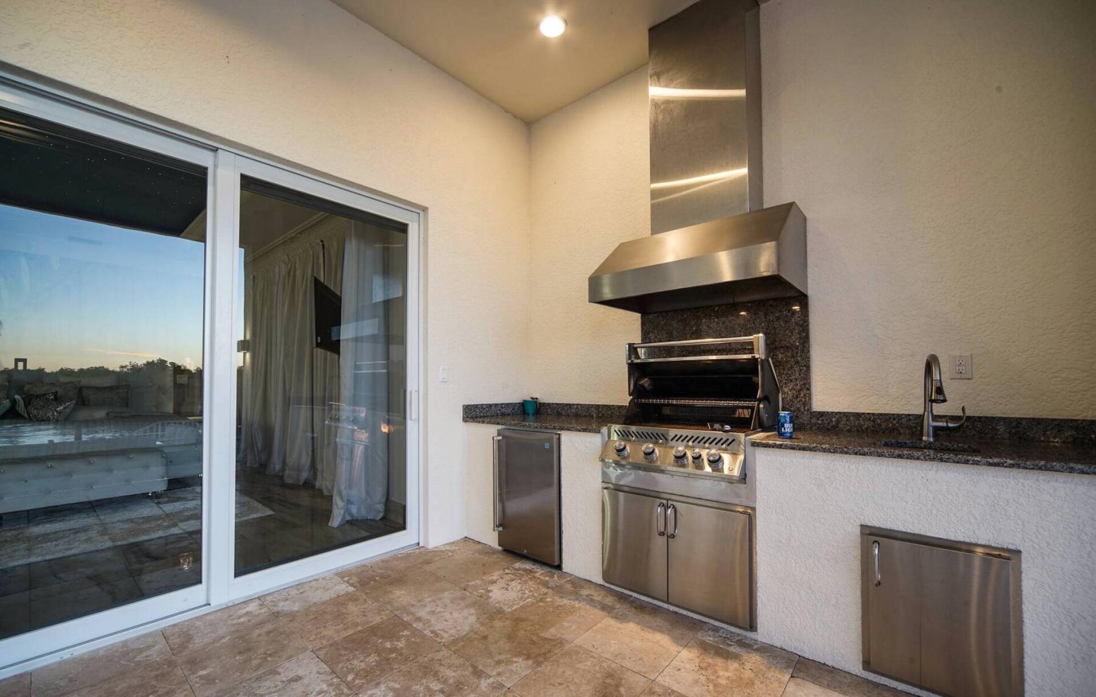 Villa White Crystal hat keinen Cage, weshalb Sie einen ungestoerten Ausblick auf die wunderschoene Natur haben. Stattdessen wird durch eine hochmoderne Mückenabwehranlage ein erfolgreicher Muechenschutz erreicht, welche unschädlich ist und biologisch wirkt. Diese Anlage wirkt auch gegen die lästigen „No See Ums“ Mücken, welche durch die Maschen eines Screen gelangen. Diese Anlagen werden bereits erfolgreich in den großen Freizeitparks eingesetzt. Der Aussenbereich beeindruckt mit seiner Groesse und einem einzigartigen Ausblick. Durch die Westausrichtung koennen Sie den ganzen Tag die Sonne Floridas geniessen. Es gibt Loungemoebel zum Entspannen. Der elektrisch beheizbare Pool und Spa mit Salzanlage (kein Salzfilm auf der Haut, nur weicheres Wasser) laesst keine Wuensche offen. Der ueberdachte Bereich bietet eine Sommerkueche - hier kann der frische Fang direkt zubereitet werden. Ein Esstisch fuer 8 Personen steht zur Verfuegung.