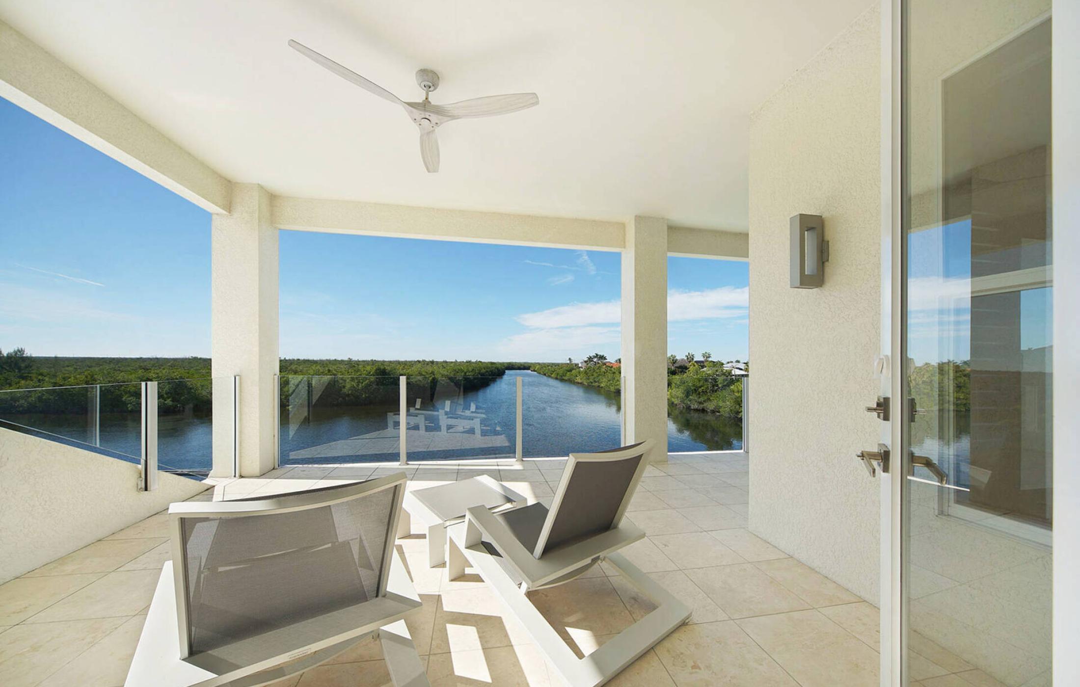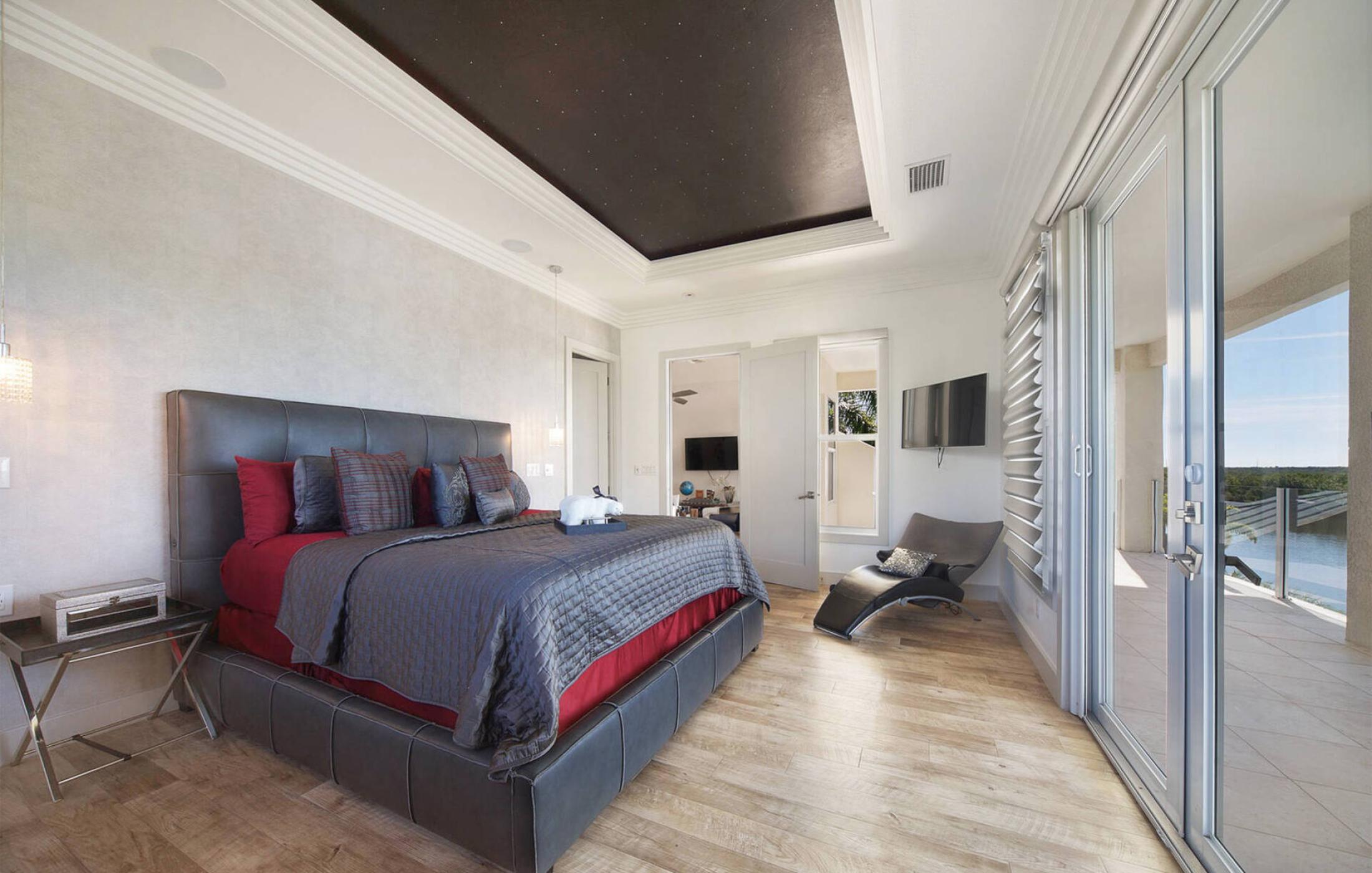 - Master-Suite 2 mit King-Bett (Obergeschoss). Von hier aus haben Sie direkten Zugang zum Balkon. Diese gemuetliche Suite bietet einen atemberaubeden Ausblick auf den Kanal und die Mangroven. Der Sternenhimmel laed zum Relaxen ein.
